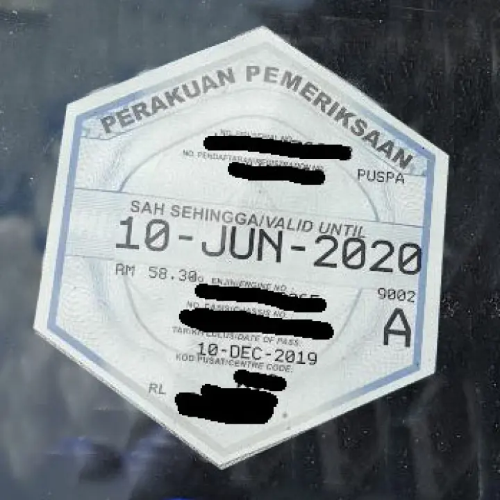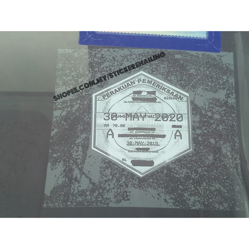 Puspakom Certificate Perakuan Pemeriksaan Window Sticker Sticker Only For Ehailing E Hailing Commercial Vehicles Shopee Malaysia