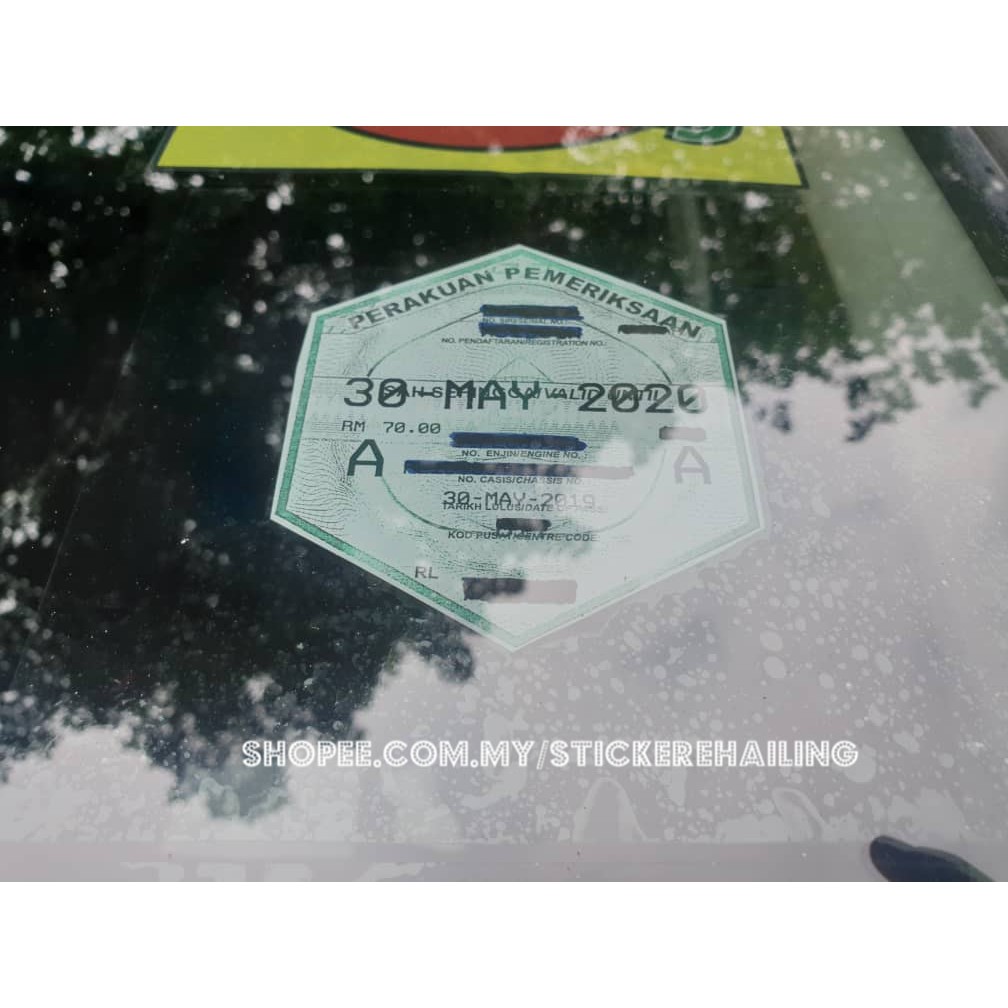 Ehailing Sticker E Hailing Grab Puspakom Certificate Perakuan Pemeriksaan Window Sticker Sticker Only Shopee Malaysia