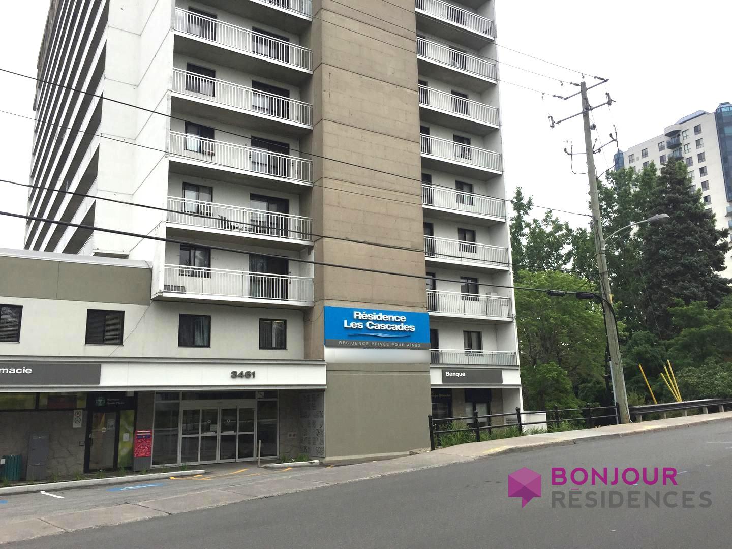 La résidence les cascades fait partie d un vaste complexe jumelé à une seconde tour résidence angelica qui abrite un chsld un centre de jour et des appartements privés autonomes.