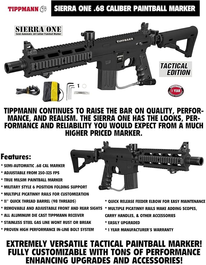 Amazon Com Tippmann Sierra One Paintball Marker Tactical Edition Sports Outdoors