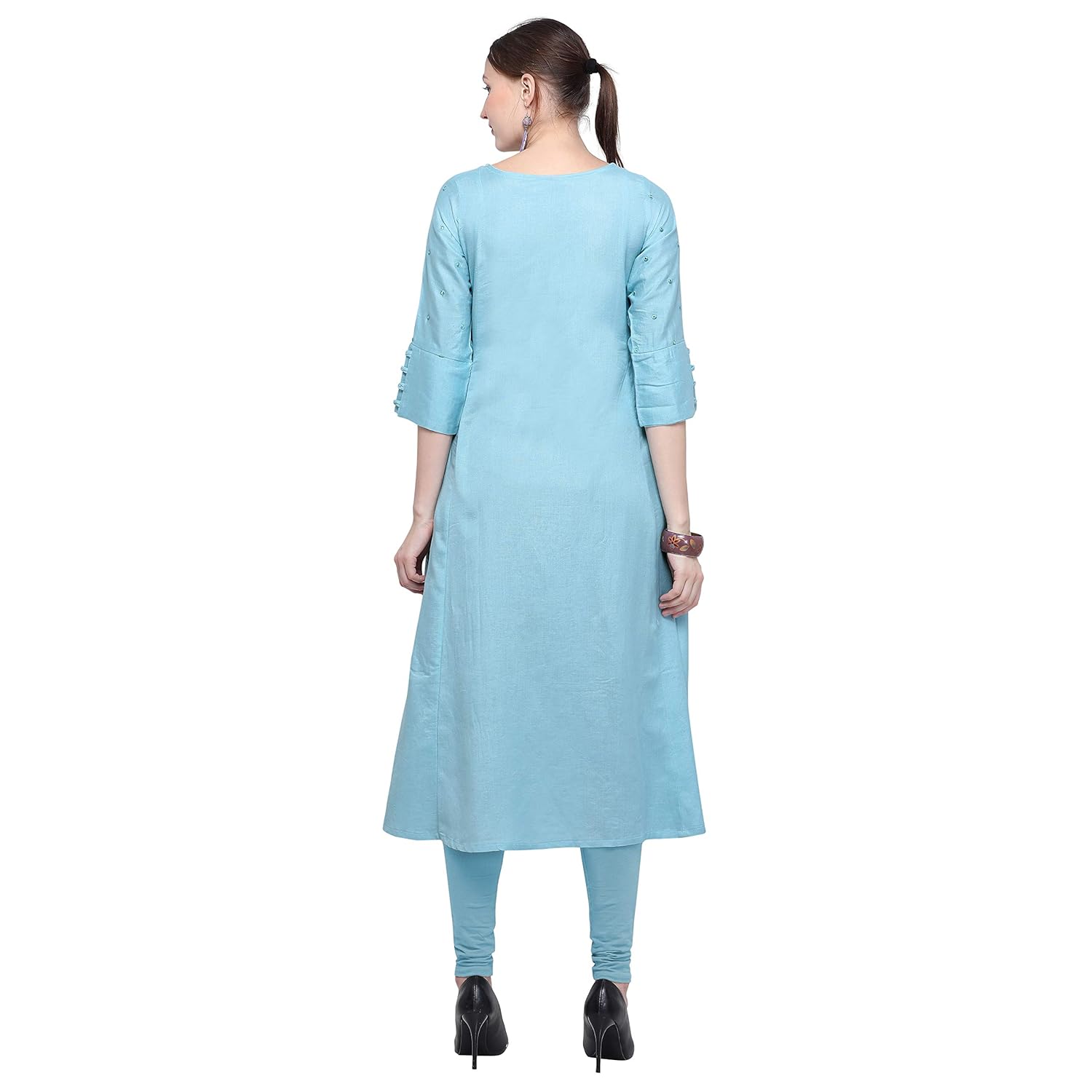 Buy Hridya Women S Sky Blue Cotton Silk Kurti At Amazon In